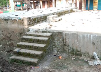 चबुतरा निर्माण में ठेकेदार ने किया गुणवत्ता की अनदेखी  डेढ़ साल में भी नहीं बन पाया चबुतरा, उधड़ रहा है ...