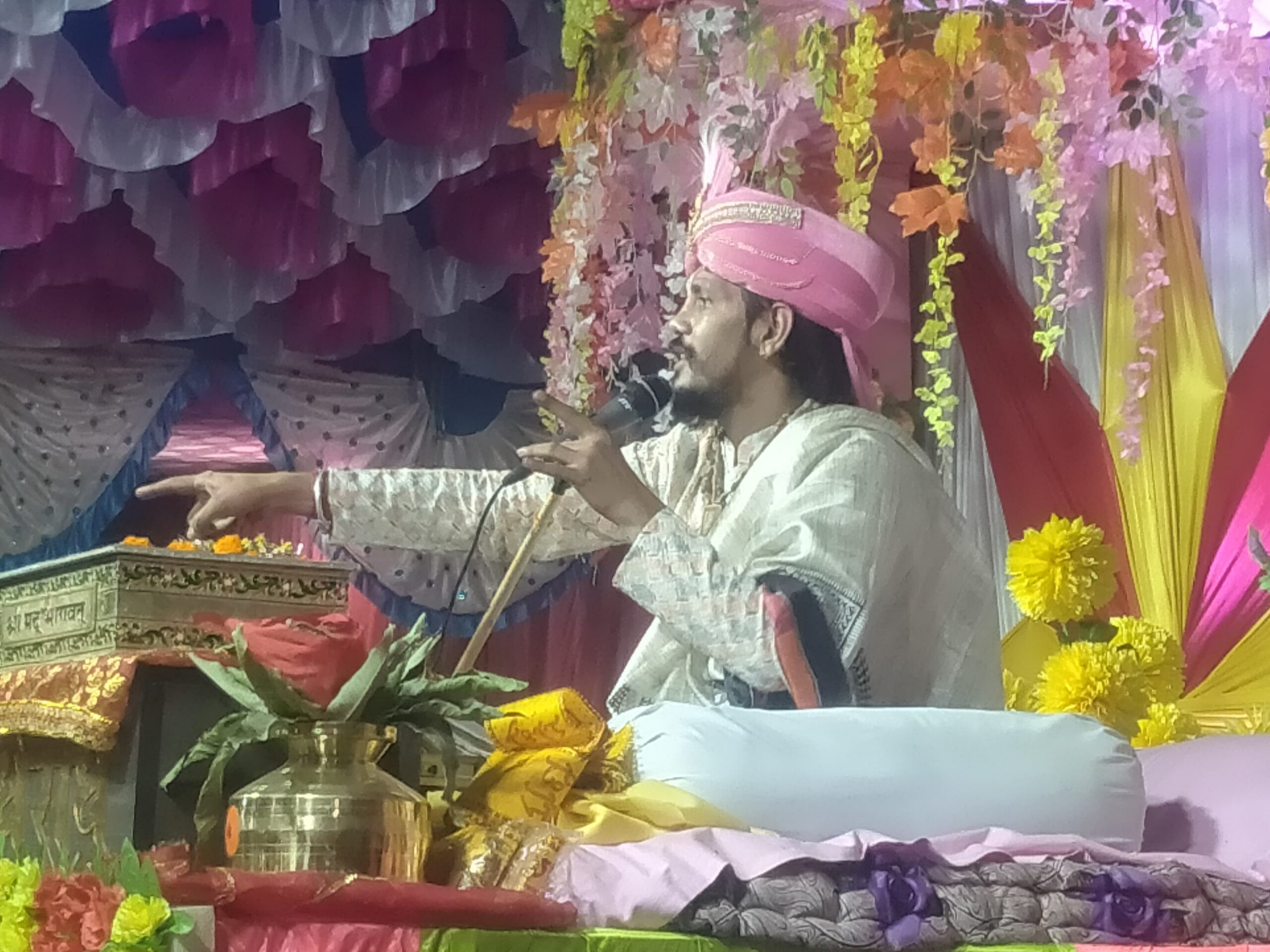 ग्राम अहिल्दा में फिरतराम साहू पत्नी मनियारा बाई साहू के यहां आयोजित श्रीमद् भागवत ज्ञान यज्ञ सप्ताह का आयोजन 21 दिसम्बर से चल रहा है। इस संगीतमय श्रीमद भागवत महापुराण कथा ज्ञान यज्ञ सप्ताह के चौथे दिन आचार्य गौरव जोशी ने सूर्यवंश वर्णन और कृष्ण जन्मोत्सव की कथा का विस्तार पूर्वक वर्णन किया। कथावाचक पंडित गौरव जोशी ग्राम नगोई बिलासपुर वाले ने श्रीमद् भागवत कथा का महत्व बताया कि कलयुग में भागवत की कथा सुनने से जीव को मोक्ष की प्राप्ति होती है। साथ ही जन्म जन्मांतर के पापों का अंत भी होता है। भागवत कथा एक ऐसी कथा है, जिसे ग्रहण करने मात्र से ही मन को शांति मिलती है। भागवत कथा सुनने से अहंकार का नाश होता है। कथा वाचक पंडित गौरव जोशी ने कहा कि जब पृथ्वी पर अत्याचार बढ़ने लगा तब गौ माता भगवान ब्रह्मा के पास पहुंची और उसका निवारण करने की बात कहने लगी तब भगवान ब्रह्मा ने गौ माता से कहा कि सृष्टि के सभी लोगों को प्रभु का ध्यान करना चाहिए। तब जाकर इस समस्या का समाधान होगा। गजेंद्र मोक्ष राम जन्म व कृष्ण जन्म की कथा सुनाते हुए कहां की तालाब में स्नान करने गए गजेंद्र का पैर घड़ियाल ने पकड़ लिया था। जिसकी पीड़ा से गजेंद्र परेशान थे और उन्होंने भगवान का स्मरण किया जिसके बाद भगवान नारायण पहुंचकर गजेंद्र को मुक्त कराया। इसके बाद अयोध्या में जन्मे भगवान श्रीराम की कथा सुनाई। राजा दशरथ महारानी कौशल्या के घर जन्म हुआ भगवान श्रीराम ने मर्यादा पुरुषोत्तम स्थापित कर मर्यादा पुरुषोत्तम कहलाया। कृष्ण जन्म के प्रसंग शुरू होते ही पंडाल में मौजूद श्रद्धालु नंद के आनंद भयो जय कन्हैया लाल की भजनों के साथ झूम उठे। भगवान श्री कृष्ण की वेश में नन्हे बालक के दर्शन करने के लिए पंडाल में उपस्थित श्रद्धालु लोग लालायित नजर आ रहे थे। कथावाचक जोशी ने कहा कि जब धरती पर चारों ओर त्राहि त्राहि मच गई चारों ओर अत्याचार अनाचार का साम्राज्य फैल गया और जब कंस ने सभी मर्यादाएं तोड़ दी तब बंदी गृह में भगवान श्री कृष्ण ने देवकी के आठवें गर्भ के रूप में जन्म लिया। जिसके बाद वासुदेव ने नन्हे बालक को लेकर गोकुलधाम नंद बाबा यशोदा के पास छोड़ आए और वहां श्री कृष्ण का जन्म उत्सव मनाया गया। इस अवसर पर कथावाचक पंडित गौरव जोशी ने भगवान श्री कृष्ण की विभिन्न बाल लीलाओं का वर्णन किया। अहिल्दा में चल रहे भागवत कथा को श्रवण करने दूर-दूर से श्रद्वालु पहुंच रहे है।