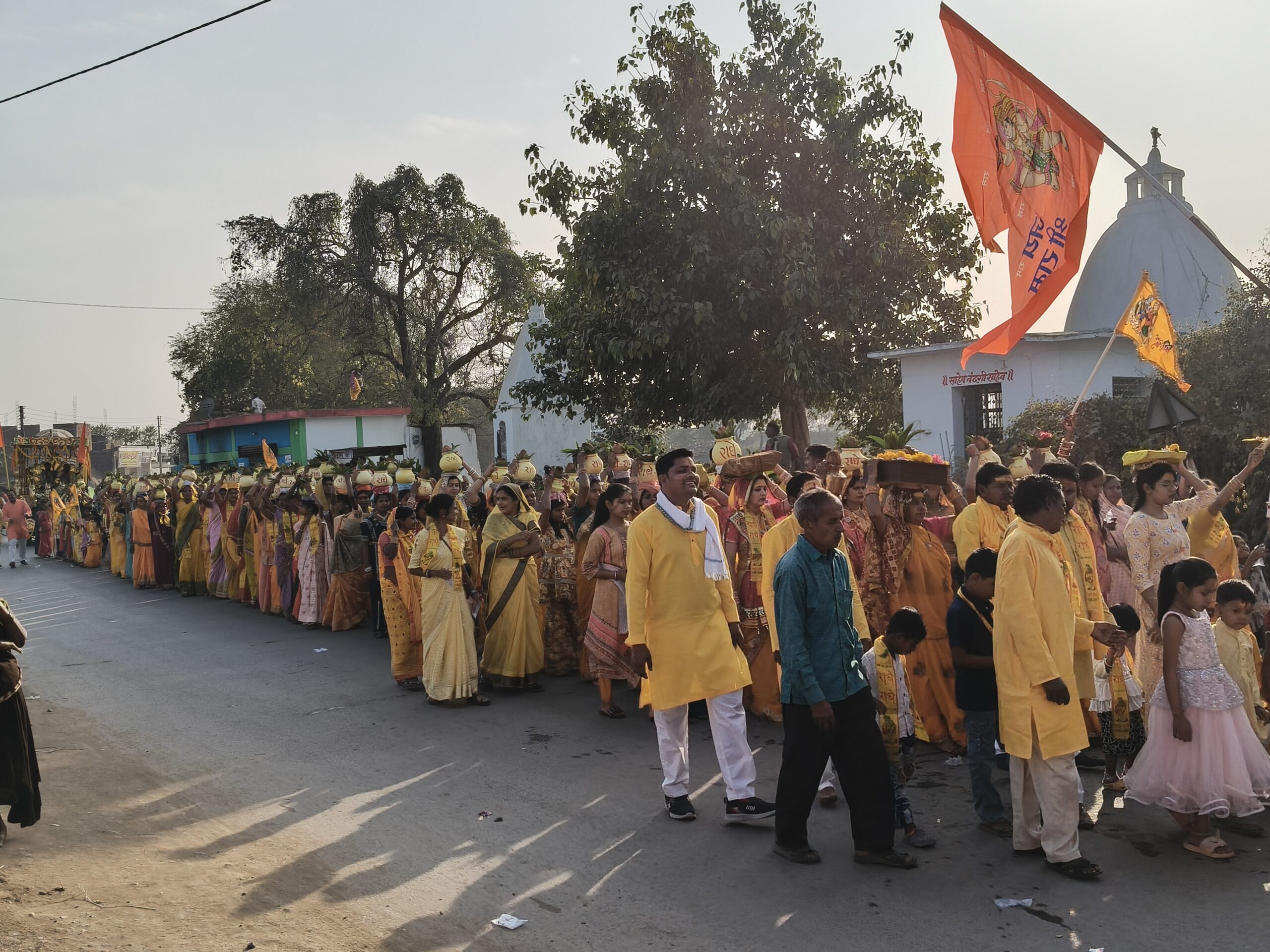 भागवत कथा प्रारंभ के पूर्व भव्य कलश यात्रा फ़िरत राम साहू के परिवारजनो एवं बड़ी संख्या में ग्रामवासियों के द्वारा निकाली गई। कलश यात्रा गांव के मुख्य गुड़ी चौक से होकर प्रमुख चौक, चौराहा से होकर मंदिर पहुंची। जिसके बाद भागवत की पूजा-अर्चना कर पूजन के बाद कलश की स्थापना की गई। इस मौके पर कथा वाचक पंडित गौरव जोशी नगोई बिलासपुर वाले ने उपस्थित श्रद्वालुओं को श्रीमद् भागवत महापुराण की जानकारी देते हुए कहा कि भागवत कथा का श्रवण करने से मानव जीवन में एक जन्म ही नहीं अपितु हमारे कई जन्मों के पापो का नाश होने के साथ ही शुभ कार्यो का उदय होता है। इसको सुनने मात्र से जीव जन्म और मरण के बन्धन से मुक्त हो जाता है। उन्होने कहा कि भक्ति देवी के कष्ट की निवृत्ति के लिए श्रीमद् भागवत कथा का साप्ताहिक अनुष्ठान किया था। जहां संत कुमारों ने भागवत का प्रवचन करते हुए नारद के मन का संशय दूर किया। इसी कथा को धुंधकारी प्रेत ने अपने अग्रज से श्रवण किया और प्रेत योनि से मुक्ति पाकर विष्णु लोक को प्राप्त हुए। कथा वाचक पंडित गौरव जोशी ने कहा कि भागवत कथा श्रवण मात्र से जीव के सभी पाप कर्म मिट जाते है। अंत में ग्रामीणों ने सामूहिक आरती कर प्रसाद का वितरण किया। इस दौरान शिवकुमार, संजय, रामकुमार, भारती, सावित्री, सरिता कमलेश साहू, मुकुत राम, रामरतन, चुन्नीलाल, हवल, शिवप्रसाद, अनिल, जगतराम, गोलू, अक्षय, नितेश राकेश, मुकेश साहू, अंकित साहू सहित बड़ी संख्या में ग्रामीणजन मौजुद रहे।
