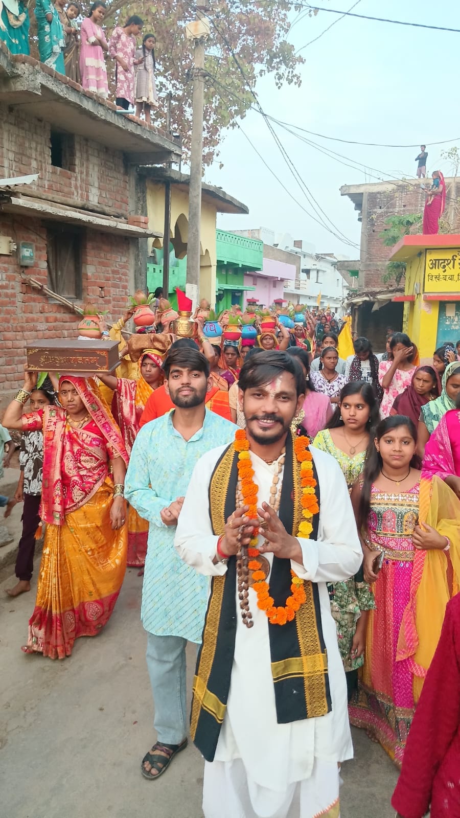 मेंन रोड पर स्थित आदर्श ग्राम पंचायत मुंडा में भोलाराम सावन बाई वर्मा के निवास में आयोजित संगीतमय श्रीमद् भागवत कथा ज्ञान यज्ञ सप्ताह का शुभारंभ 03 अप्रैल को भव्य कलश यात्रा के साथ हुआ। सैकड़ो श्रद्धालु महिलाएं एवं लड़कियों ने पीले वस्त्र धारण कर सिर पर कलश रखकर भक्ति भाव से कलश यात्रा में भाग लिया। कथा स्थल से निकली कलश यात्रा कोर्रा तालाब होते हुए बस्ती पारा महामाया मंदिर पहुंची। महामाया मंदिर में पूजा अर्चना के बाद कलश यात्रा पुनः कथा स्थल पहुंची। इस दौरान भजन कीर्तन और जय घोष से पूरा गांव भक्तिमय माहौल में डूबा रहा। कलश यात्रा में कथा वाचक पंडित गौरव जोशी नगोई बिलासपुर वाले एवं परायणकर्ता विजय पांडेय भी शामिल हुए। कथा वाचक पंडित गौरव जोशी ने दूसरे दिन परीक्षित जन्म और सुखदेव के आगमन का प्रसंग सुनाया। उन्होंने बताया कि द्रोणाचार्य के पुत्र अश्वत्थामा ने पांडवों को नष्ट करने के लिए ब्रह्मास्त्र चलाया था। उस समय अभिमन्यु की गर्भवती पत्नी उतरा के गर्भ से राजा परीक्षित का जन्म हुआ। कथा के अनुसार राजा परीक्षित ने एक बार तपस्यारत मुनि के गले में मृत सर्प डाल दिया था। इस पर क्रोधित मुनि पुत्र ने उन्हें श्राप दिया की 7 दिन के भीतर सर्पदंश से उनकी मृत्यु हो जाएगी। श्राप की जानकारी मिलने पर राजा परीक्षित ने अपने दरबार में विद्वानों को बुलाया। विद्वानों के सुझाव पर सुखदेव मुनि वहां पहुंचे और राजा परीक्षित को भागवत कथा का श्रवण कराया। कथा वाचक पंडित गौरव जोशी ने भागवत के महत्व पर प्रकाश डालते हुए कहा कि कथा श्रवण से मानव जीवन के पाप नष्ट होते हैं और आत्मिक शांति मिलती है। इस दौरान मुख्य यजमान भोला वर्मा सावन बाई वर्मा हरिशंकर वर्मा महेश्वरी वर्मा उमाशंकर वर्मा सुनीता वर्मा लीलाधर नागेश्वर खगेश कुमार चंद्रभूषण वर्मा इंगेश्वर वर्मा बृजभूषण वर्मा सहित बड़ी संख्या कथा सुनने ग्रामवासी पहुंचे थे।