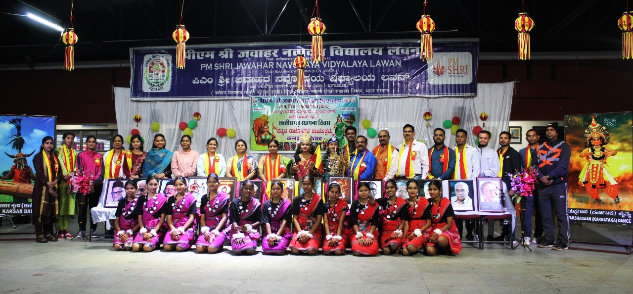 जवाहर नवोदय विद्यालय लवन में छत्तीसगढ़ राज्य स्थापना के उपलक्ष्य में रजत जयंती समारोह एवं कर्नाटक राज्योत्सव बड़े उत्साह और धूमधाम के साथ मनाया गया। छत्तीसगढ़ स्थापना दिवस और कर्नाटक राज्योत्सव का एक साथ भव्य आयोजन किया गया। इस अवसर पर विद्यालय परिसर को विशेष रूप से सजाया गया था इस मौके पर विद्यार्थियों व शिक्षकों में भारी उत्साह देखने को मिला। सांस्कृतिक कार्यक्रमों की एक श्रृंखला में, छत्तीसगढ़ की समृद्ध लोक संस्कृति को दर्शाने वाले पारंपरिक नृत्य और गीतों की मनमोहक प्रस्तुतियां दी गईं। वहीं, कर्नाटक की विरासत को उजागर करने के लिए कन्नड़ भाषी क्षेत्रों के इतिहास और महत्व पर विद्यार्थियों ने भाषण और नृत्य प्रस्तुत की। 1 नवंबर 2000 को मध्यप्रदेश से अलग होकर छत्तीसगढ़ को स्वतंत्र राज्य का दर्जा मिला था। यह दिन राज्यवासियों के लिए गर्व और उत्सव का अवसर होता है। साथ ही हर साल 1 नवम्बर को यह गौरवशाली दिन कर्नाटक राज्योत्सव दिवस के रूप में मनाया जाता, जो कर्नाटक राज्य की स्थापना का प्रतीक है। यह दिन 1 नवंबर 1956 को दक्षिण भारत के कन्नड़ भाषी क्षेत्रों को मिलाकर मैसूर राज्य (जिसे बाद में कर्नाटक नाम दिया गया) के गठन की याद दिलाता है। विद्यालय में दिन की शुरुआत प्रातः कालीन प्रार्थना सभा से हुई, जिसमें विद्यार्थियों द्वारा छत्तीसगढ़ राज्य एवं कर्नाटक राज्य से संबंधित प्रश्न मंच, विशेष जानकारियां, भाषण और विचार प्रस्तुत किए गए। तत्पश्चात मध्याह्नकाल में परम्परागत रूप से छत्तीसगढ़ राज्य स्थापना पर रजत जयंती समारोह एवं कर्नाटक राज्योत्सव का शुभारम्भ किया गया। कार्यक्रम के शरुआत में विद्यालय के प्राचार्य, सभी विद्वान शिक्षक एवं विदुषी शिक्षिकाओं को बैज, तिलक लगाकर पारम्परिक गमछा पहनाकर श्रीफल भेंट करते हुए स्वागत किया गया। जिसके बाद मां सरस्वती, छत्तीसगढ़ महतारी और कर्नाटक माता के छायाचित्रों के समक्ष दीप प्रज्वलित कर, माल्यार्पण किया गया और छत्तीसगढ़ व कर्नाटक राज्य गीत गाया गया। इसके बाद सांस्कृतिक कार्यक्रमों की एक श्रृंखला प्रस्तुत की गई, जिसमें छत्तीसगढ़ी और कन्नड़ लोकगीतों, नृत्यों और नाटकों ने दर्शकों का दिल जीत लिया। कार्यक्रम में मंच संचालन कक्षा 9 वीं के छात्राओं द्वारा छत्तीसगढ़ी बोली एवं कन्नड़ भाषा में किया गया। उन्होंने छत्तीसगढ़ और कर्नाटक राज्य का संक्षिप्त, मधुर और कम शब्दों में सारगर्भित परिचय देते हुए कार्यक्रम प्रस्तुति के क्रम में सर्वप्रथम कक्षा 6 वीं के नन्हे छात्रों आमंत्रित किया, जिन्होंने छत्तीसगढ़ी लोकनृत्य की प्रस्तुति दी इसी क्रम में नवोदय विद्यालय योजना की एक अनूठी विशेषता राष्ट्रीय एकता को बढ़ावा देने के उद्देश्य से छात्र