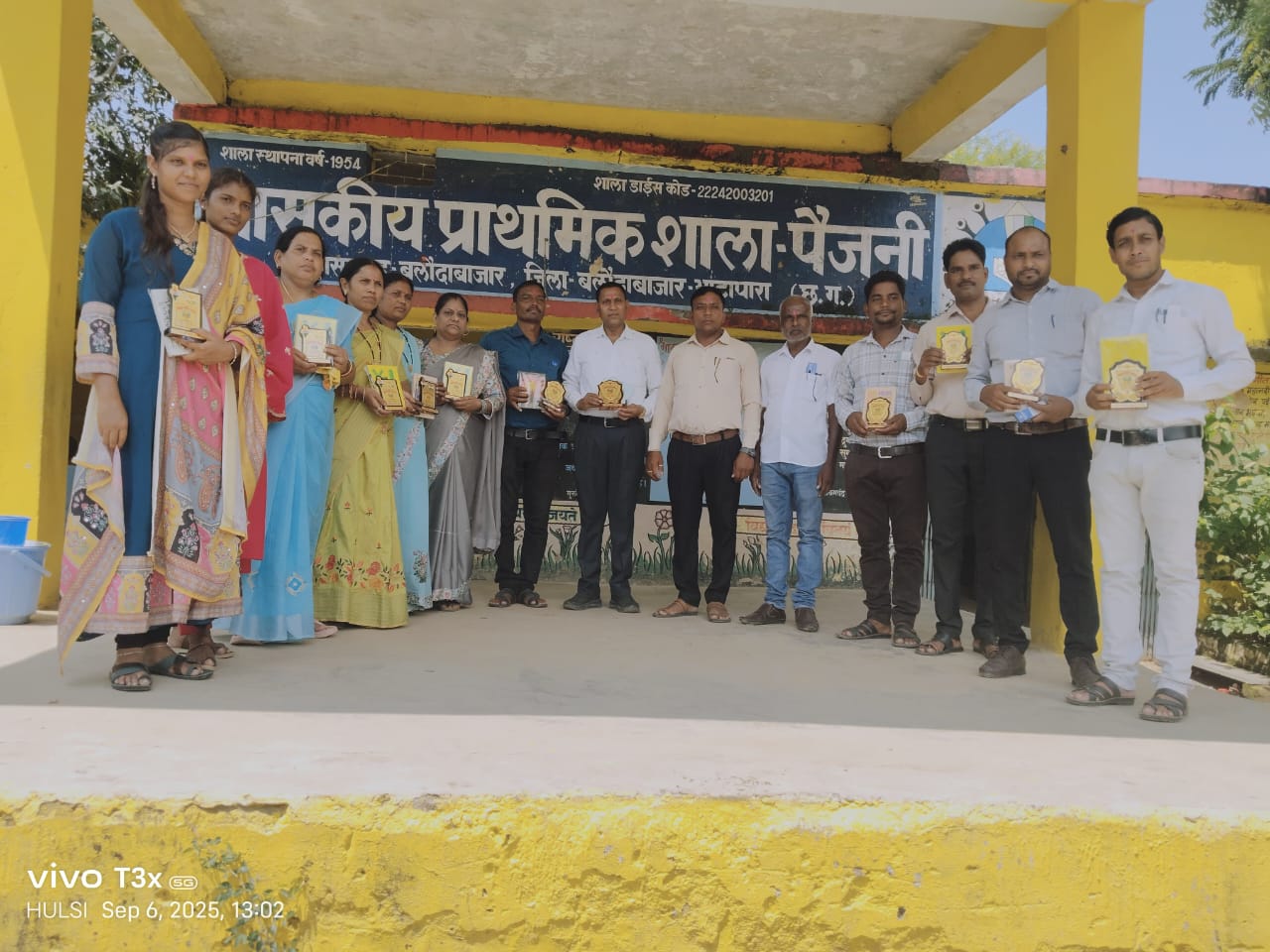 शासकीय प्राथमिक एवं पूर्व माध्यमिक शाला पैजनी में डॉक्टर सर्वपल्ली राधाकृष्णन की जन्म दिवस को शिक्षक दिवस के रूप में ग्राम पंचायत पैजानी के प्रतिनिधियों एवं शाला के छात्राओं द्वारा संयुक्त रूप से मनाया गया इस अवसर पर ग्राम के सरपंच लोकेश्वर वर्मा एवं उपसरपंच यशवंत वर्मा पूर्व सरपंच हलधर वर्मा प्राथमिक शाला कसियारा के प्रधान पाठक भगवत प्रसाद चंद्राकर, प्राथमिक शाला पैजनी के प्रधान पाठक चूड़ामणि वर्मा, पूर्व माध्यमिक शाला के प्रधान पाठक संतोष कुमार पैकरा के द्वारा डॉक्टर सर्वपल्ली राधाकृष्णन की तस्वीर पर माल्यार्पण एवं दीप प्रज्वलित कर कार्यक्रम का शुभारंभ किया शाला के छात्र-छात्राओं द्वारा स्वागत गीत एवं विभिन्न सांस्कृतिक कार्यक्रम प्रस्तुत किया गया। पंचायत प्रतिनिधियों एवं शाला के छात्र मानकी यादव, अनीता यादव ,रूतेश्वरी वर्मा ,हिना पटेल ,दुशाला गायकवाड ,राघव वर्मा पुष्पेंद्र वर्मा ,शुभम वर्मा ,विकास जांगड़े, प्रतिभा वर्मा, मीना सागर आदि के द्वारा अपने शिक्षकों को शील्ड ,डायरी ,पेन आदि देकर सम्मानित किया गया। इस अवसर पर समस्त शिक्षकों एवं पंचायत प्रतिनिधियों के द्वारा डॉक्टर सर्वपल्ली राधाकृष्णन की जीवनी पर प्रकाश डालते हुए शिक्षक दिवस के महत्व एवं शिक्षक राष्ट्र निर्माता होते हैं एक सच्चे गुरु अपने शिष्य को सही राह दिखता है इस पर प्रकाश डाला। कार्यक्रम का संचालन छात्र मानकी यादव रूतेश्वरी वर्मा के द्वारा किया गया इस अवसर पर बड़ी संख्या में ग्रामीण एवं जनप्रतिनिधि तथा पलक गण उपस्थित रहे। सम्मानित होने वाले शिक्षकों में प्रमुख रूप से प्राथमिक शाला कसियारा के प्रधान पाठक भागवत प्रसाद चंद्राकर ,प्राथमिक शाला पैजानी के प्रधान पाठक चूड़ामणि वर्मा, पूर्व माध्यमिक शाला के प्रधान पाठक संतोष कुमार पैकरा शिक्षक नरेंद्र कुमार साहू ,अरुण कुमार रात्रे , लोमश कुमार कोसरे, विनोद कुमार पटेल ,सुकृता सेन,सुनीता ध्रुव,ज्यामिति यदु दीपमाला तिवारी ,हुलसी वर्मा ,गीतांजलि पटेल ,मनोज कुमार वर्मा आदि थे।