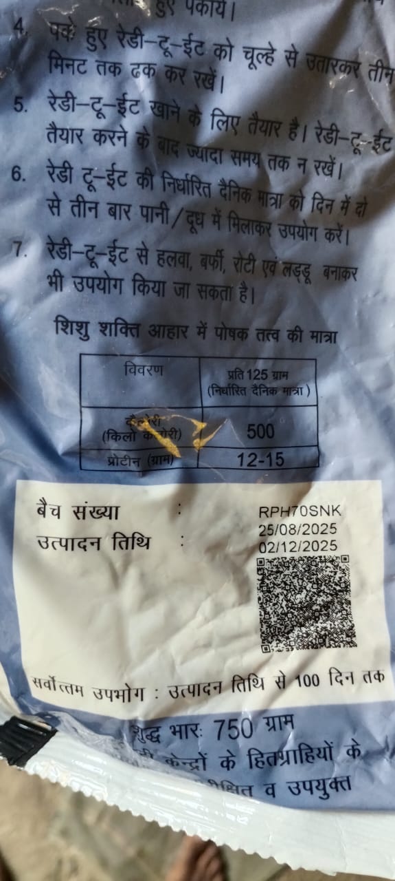 छत्तीसगढ़ सरकार के द्वारा कुपोषण मुक्त बनाने के लिए करोड़ो रूपये खर्च करने का दावा कर रही है। बच्चों के साथ-साथ गर्भवती महिलाओं को भी पोषण आहार देने के लिए सभी आंगनबाड़ी केन्द्रो में रेडी टू ईट का वितरण किया जा रहा है। लेकिन परियोजना कार्यालय लवन अंतर्गत ग्राम पंचायत चितावर के आंगनबाड़ी केन्द्र क्रमांक 01 में कार्यकर्ता एवं सहायिका के द्वारा एक्सपायरी डेट की रेडी टू ईट का वितरण कर दिया गया है। चितावर गांव में लगभग 18 दिन एक्सपायरी डेट की रेडी टू ईट का वितरण किया गया है। यहंा के आंगनबाड़ी केन्द्र में भारी लापरवाही बरतते हुए एक्सपायरी डेट की रेडी टू ईट वितरण कर दी गयी है। रेडी टू ईट का एक्सपायरी होने की जानकारी लोगों तब लगी जब गांव का ही एक युवक के द्वारा इसका वितरण करते हुए विडियो बना लिया गया। युवक के द्वारा विडियों बनाकर सोशल मिडिया पर वायरल कर दिया। इस वायरल विडियों में युवक के द्वारा विरोध किया जा रहा है, वही, महिला कर्मचारी के द्वारा यह कहा जा रहा है कि ऊपर से जैसे आया है वैसे ही वितरण किया जा रहा है। इस पैकेट में उत्पादन तिथि 25 अक्टूबर 2025 तथा एक्सपायरी तिथि 02 दिसम्बर 2025 दर्शायी गई है, जबकि वायरल विडियों में 16 दिसम्बर बतायी जा रही है। इस प्रकार यहंा की आंगनबाड़ी कार्यकर्ता एवं सहायिका के द्वारा जानबूझकर एक्सपायरी रेडी टू ईट का वितरण किया जा रहा है। इस वायरल विडियों की पुष्टि दैनिक सारंगढ़ टाईम्स अख़बार नहीं करता है, लेकिन इन दिनों सोशल मिडिया पर यह विडियों तेजी से प्रसारित हो रहा है, जिस पर विभाग के द्वारा अभी तक कार्यवाही नहीं किया गया है। वही, इसके संबंध में परियोजना अधिकारी लवन में पदस्थ चन्द्रहास साहू से उसके मोबाईल नम्बर पर दो बार सम्पर्क करने का प्रयास किया गया, लेकिन उसने मोबाईल रिसीव नहीं किया।